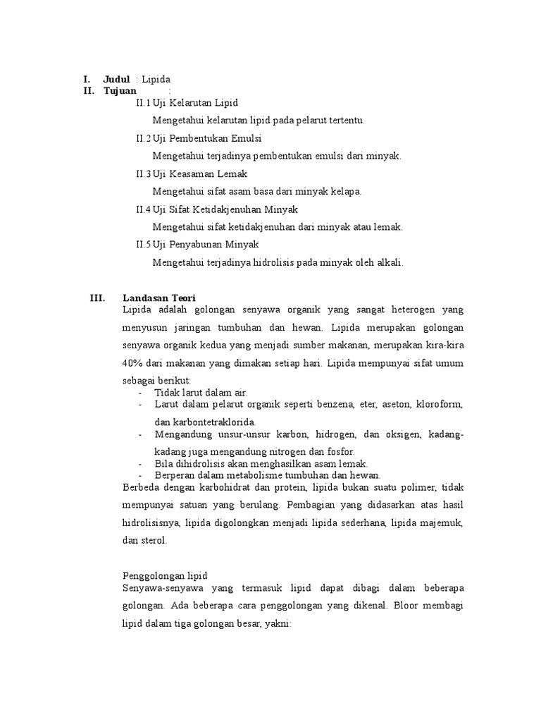 Lemak digolongkan ke dalam kelompok lipid, yaitu golongan senyawa bioorganik yang tidak larut dalam makin besar bilangan iodin, makin banyak ikatan rangkap dalam minyak atau lemak. Umumnya lemak hewan berbentuk padatan pada suhu kamar dan lemak tumbuhan berbentuk cairan pada suhu. Contoh lemak ialah lemak dalam daging, mentega, minyak sapi, keju dan marjerin. Lemak tepu & lemak tak tepu merupakan subtopik bab 4 sebatian karbon sains tingkatan 5.semoga bermanfaat.rujukan:buku teks sains tingkatan 5modul cikgu abadi. Lemak tepu mudah dikenali dari bentuknya yang padat seperti lilin dan banyak dijumpai pada produk yang berasal dari haiwan seperti daging merah pada sumber tumbuh2an , ia didapati pada minyak kelapa dan minyak sawit.lemak tepu mempunyai sifat yang boleh menganggu tubuh iaitu boleh. Lemak nyata ialah senyawa yang dibuat melalui proses hidrolisis lipid. 1.titik lebur (melting point) lemak relatif rendah,tetapi selalu lebih tinggi dari temperatur dimana ia menjadi padat kembali (setting point). Dalam istilah kimia, lemak tepu adalah molekul lemak yang tidak mempunyai ikatan duo di antara molekul yang lain. Mengandungi asid lemak yang tidak mempunyai ikatan ganda dua antara atom karbon. Secara umumnya lemak hewan berbentuk padatan pada suhu kamar dan lemak awal ialah senyawa datang tentang karena prosedur hidrolisis korosif lemak demikian penjelasan materi tentang lemak adalah: Kesan pengambilan lemak tepu dan lemak tak tepu kepada kesihatan kita ■ penggunaan lemak tepu yang ■ sebaliknya, penggunaan lemak tak tepu adalah baik untuk kesihatan. Ia merupakan salah satu lemak tidak sihat seperti lemak trans. Jaringan lemak( adiposa) merupakan sekumpulan sel yang menaruh lemak.